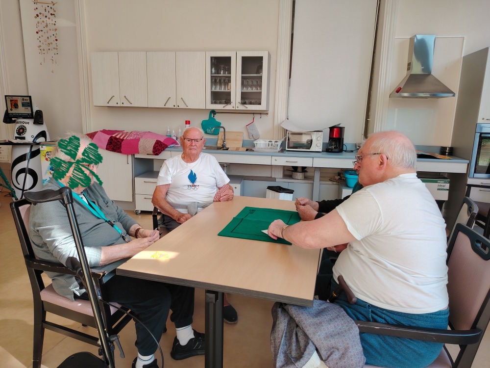 Lors de notre rencontre inter ehpad, nos résidents ont partagé un bel après-midi placé sous le signe de la convivialité et du savoir faire. Tandis que nos passionnés de belote échangeaient quelques parties animées avec les résidents de l’autre établissement, un atelier tricot rassemblait celles et ceux qui souhaitaient apprendre et perfectionner leurs gestes.