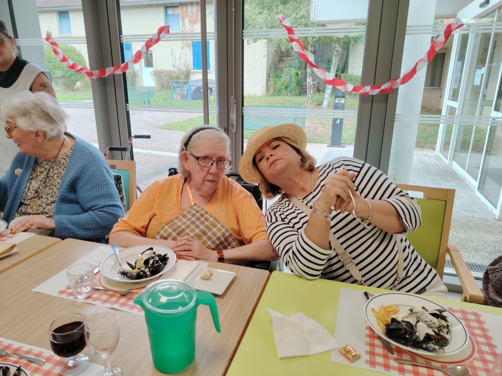 Nous avons récemment partagé un délicieux repas sur le thème  » Guinguette « , autour d’un copieux menu moules frites. Dans une ambiance chaleureuse et festives, résidents et soignants ont profité pleinement de ce moment convivial. Entre rires, discussions et quelques pas de danse, chacun a savouré cette parenthèse gourmande et joyeuse. Une bel instant de partage à renouveler sans modération !