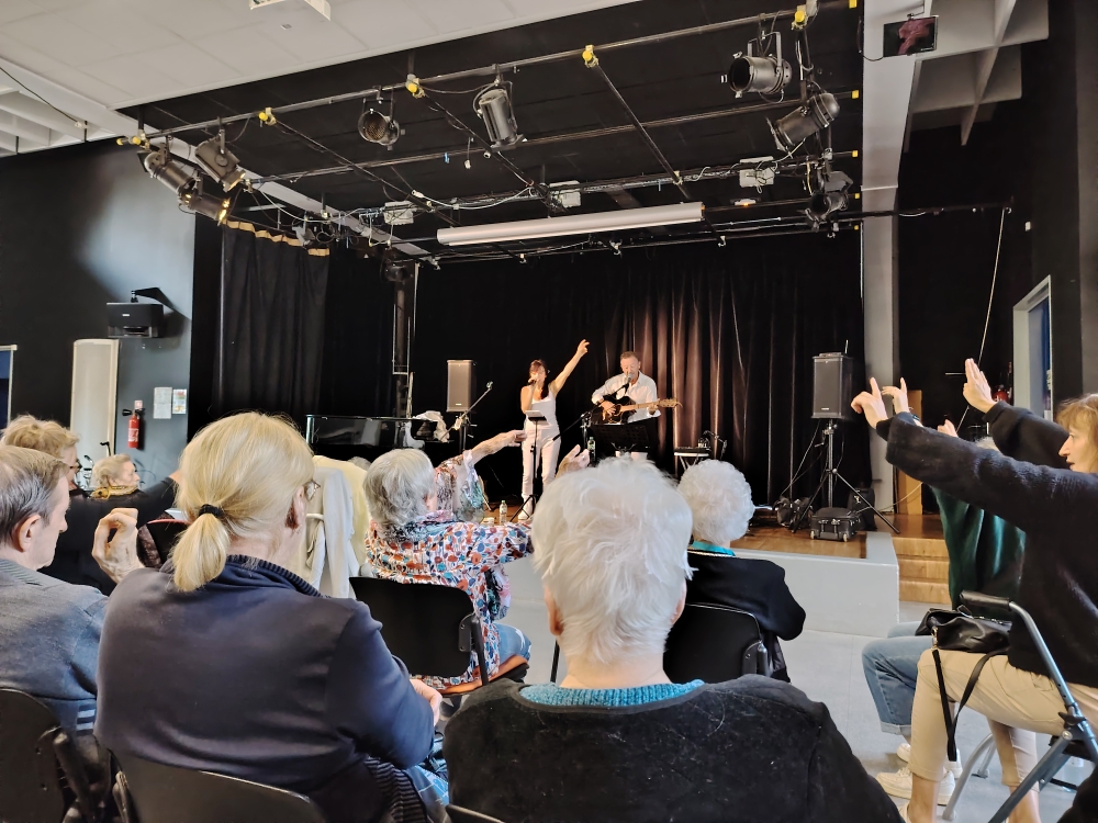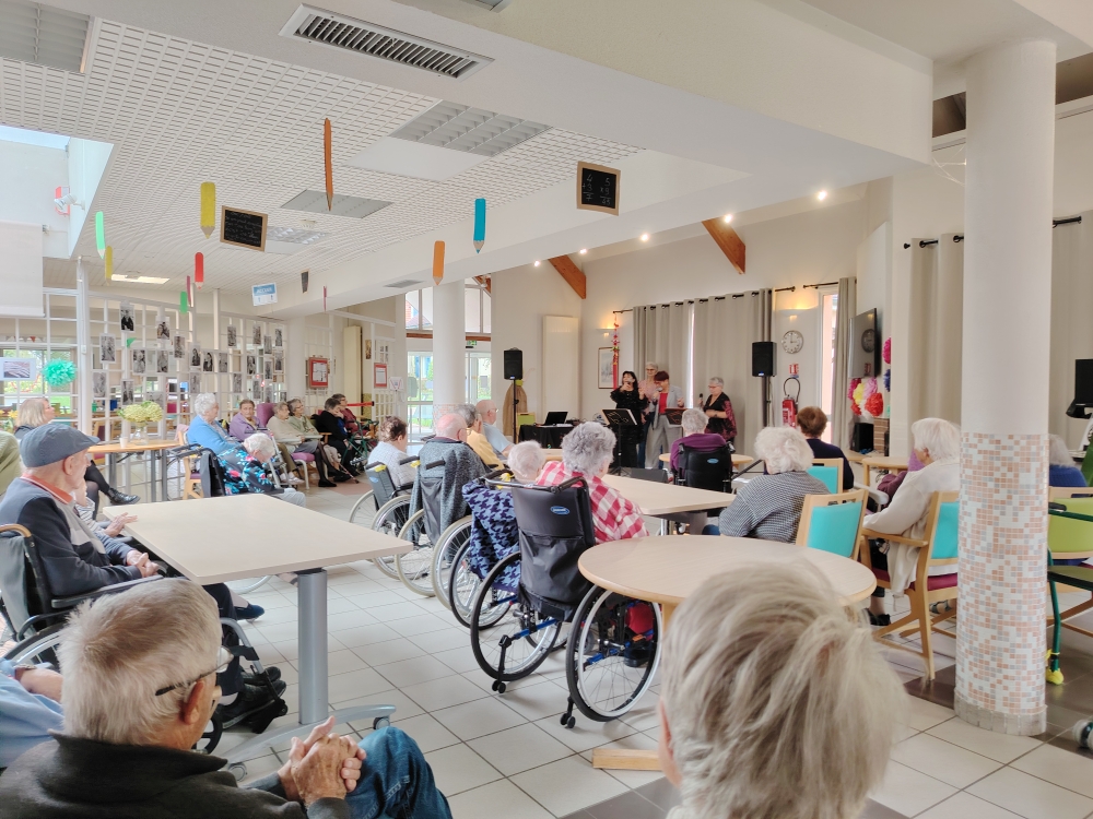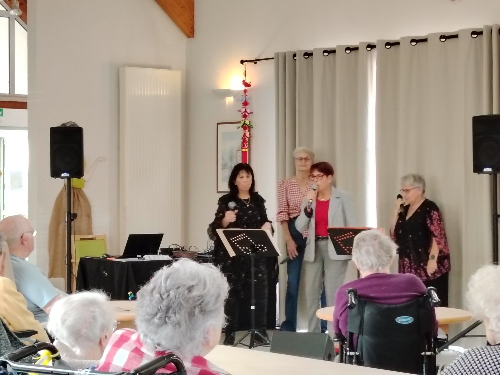 Pour célébrer les anniversaires du mois de septembre, nous avons eu le plaisir d’accueillir  » Les Enchanteuses « . Leur répertoire, mêlant de grands classiques et des chansons plus actuelles, a ravi l’assemblée et apporté une belle ambiance musicale. Ce fut un véritable moment de fête et de partage, ponctué par le traditionnel gâteau d’anniversaire, dégusté dans la joie et la convivialité. Une après-midi en musique qui laisse de jolis souvenirs aux résidents comme aux invités.