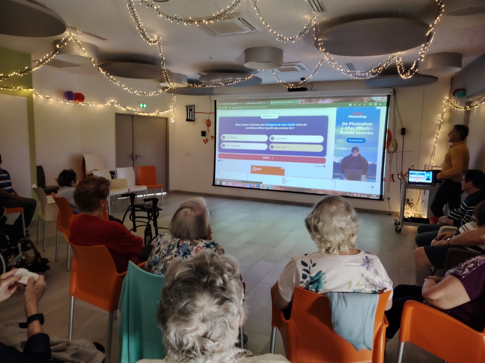 Lors de notre rencontre inter EHPAD, nous avons partagé un agréable moment autour d’un quiz sur le cinéma et musique de film. Les participants se sont volontiers prêtés au jeu, dans une ambiance conviviale et un esprit de saine compétition. Les éclats de rire ont ponctué cette belle après-midi mémoire, faisant de cette activité un véritable moment de partage et de bonne humeur. Une expérience à renouveler sans hésiter !